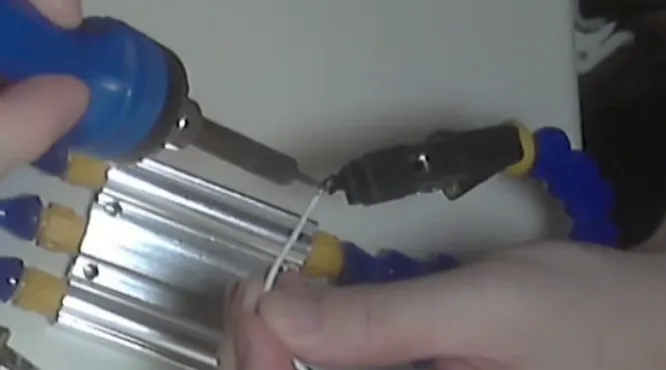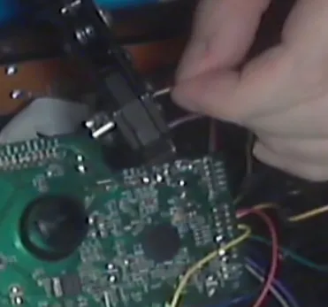 スイッチの端子の被覆をずらすと線が直接はんだ付けされているので、コテで外す。