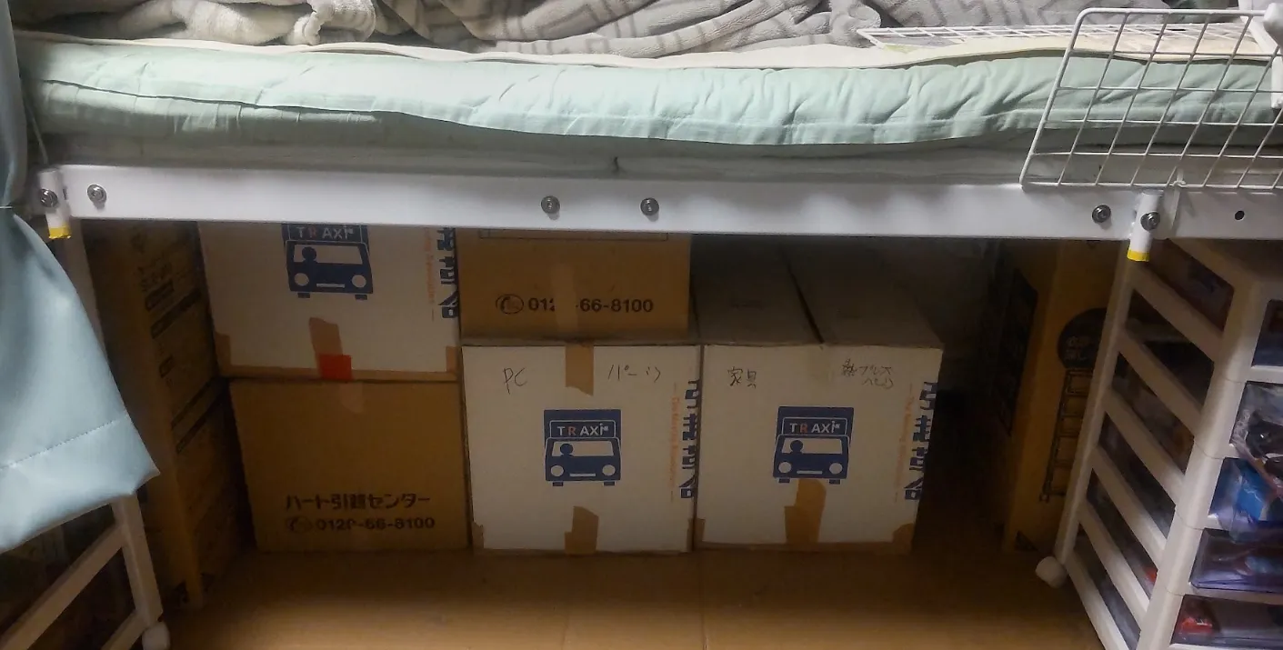 狙い通りベッド下の荷物の出し入れはしやすくなった。柵を外したことで剛性は多少下がるとは思うが、今の使用環境上問題なさそうである。